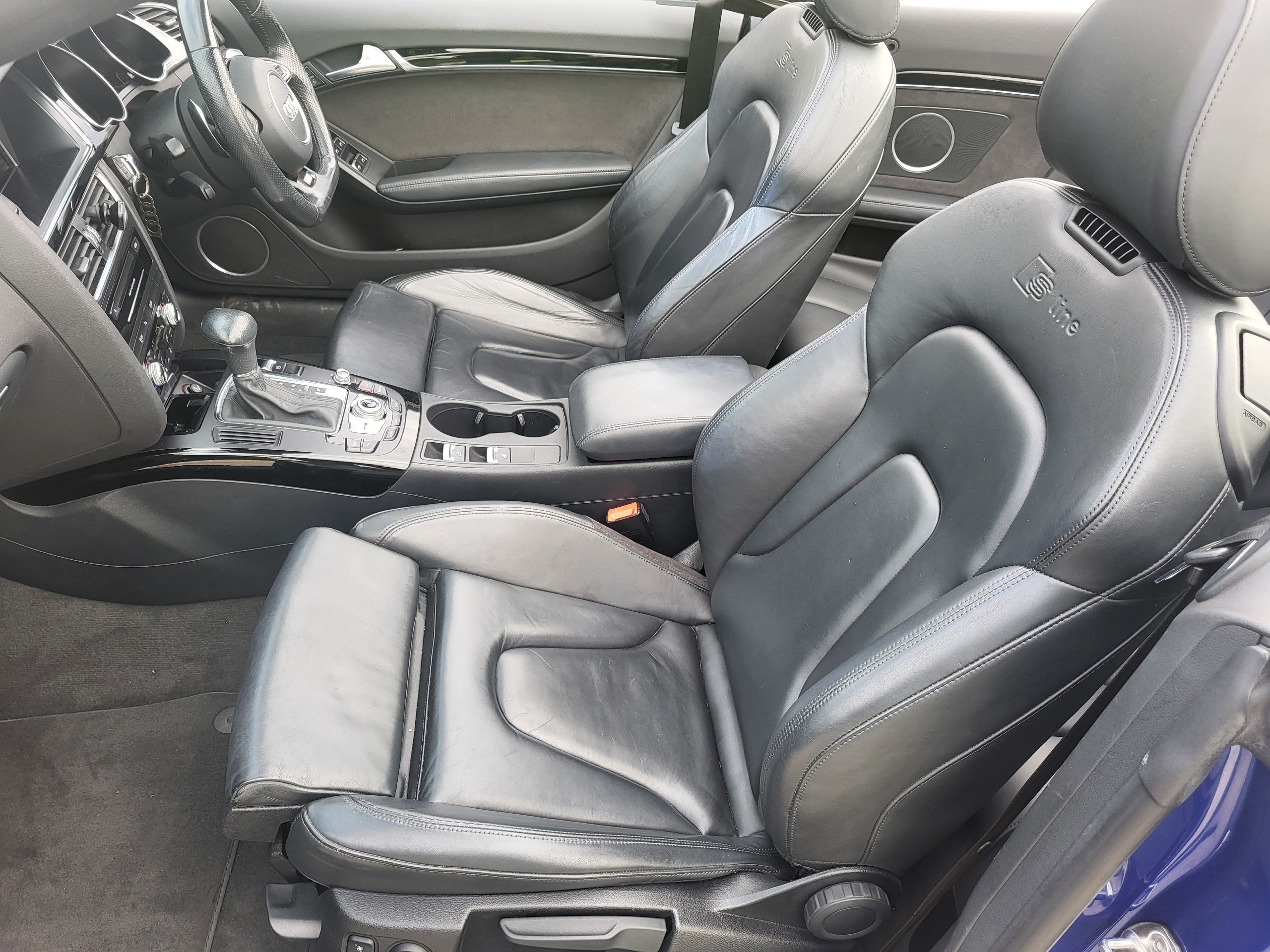Here we have a rarely available 2016 Audi A5 Cabriolet finished in Sepang Blue Metallic with black leather interior, a sleek and stylish convertible with a fuel-efficient diesel engine and ULEZ compliance, perfect for city driving. two owners plus demo with only 61,000 miles on the clock with full service history, and MOT valid until 22/09/2026 with no advisories, this vehicle is in excellent condition, offering a smooth and comfortable ride with its 2.0 TDI S line Special Edition Plus engine delivering 190 ps. The 2-door car has 4 seats, making it ideal for small groups, and comes with features such as a Bang and Olufsen sound system, sat nav, front & rear parking sensors, rear camera, DAB radio, cruise control, colour centre console screen, 12V power socket x2, AMI - Audi Music Interface, and an AUX-IN socket. Don't miss out on the opportunity to own this fantastic Audi A5 Cabriolet, a perfect combination of luxury and performance. Finance & warranty packages available. Timing belt & water pump changed at 43,752 miles also gearbox service.