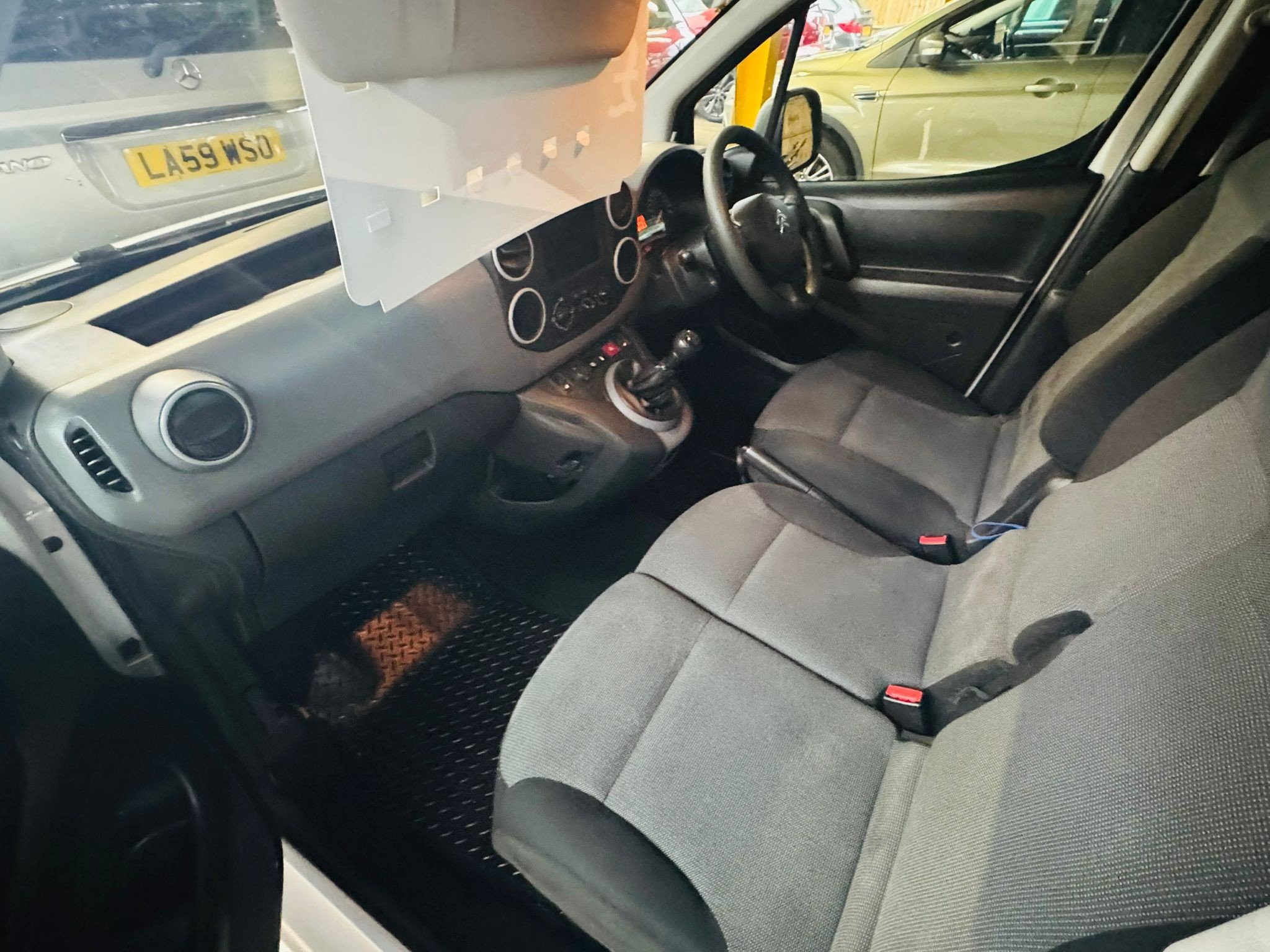 Introducing the 2019 Citroen Berlingo 1.6 BlueHDi 625 Enterprise Panel Van, finished in white with grey cloth interior, with just 84000 miles on the clock and a MOT that doesn't expire until 26/06/2026. This reliable diesel vehicle is ULEZ compliant and features 3 seats in the single cab, making it perfect for transporting goods or a small team. With 5 doors and a gross weight of 1960kg, this panel van offers plenty of space and power for all your commercial needs. The practical design includes 15in steel wheels, a front bumper reinforcement bar, manually adjustable door mirrors, and convenient nearside and twin sliding side loading doors. This is the ideal vehicle for efficient and reliable transportation, all wrapped up in a sleek and modern package.